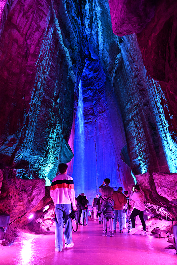 In Tennessee, we stepped inside a glass-front elevator and descended into the mountain’s depths to see world-renowned Ruby Falls. As our comically entertaining tour guide, Vil from Kentucky, led us past the cave’s fantastical mineral formations, we learned the story of Leo Lambert and the falls he named for his wife, Ruby. In 1928, while blasting an elevator shaft down to Lookout Mountain Cave, Lambert accidentally discovered a towering underground waterfall cascading over a sheer cliff wall. A year later, he opened the natural wonder to a steady stream of visitors that continues today.